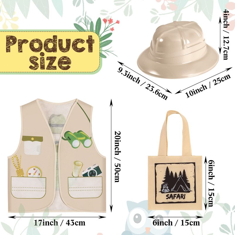 - Size Details: the mini tote bag measures about 7.9 x 7.9 inches, which is big enough to fill candy, small toys and more; The beige hats are about 9.3 x 10 x 4 inches, suitable for most head sizes, even adults can wear them; The explorer vest measures about 19.7 x 17 inches, which will not cause tension to the body