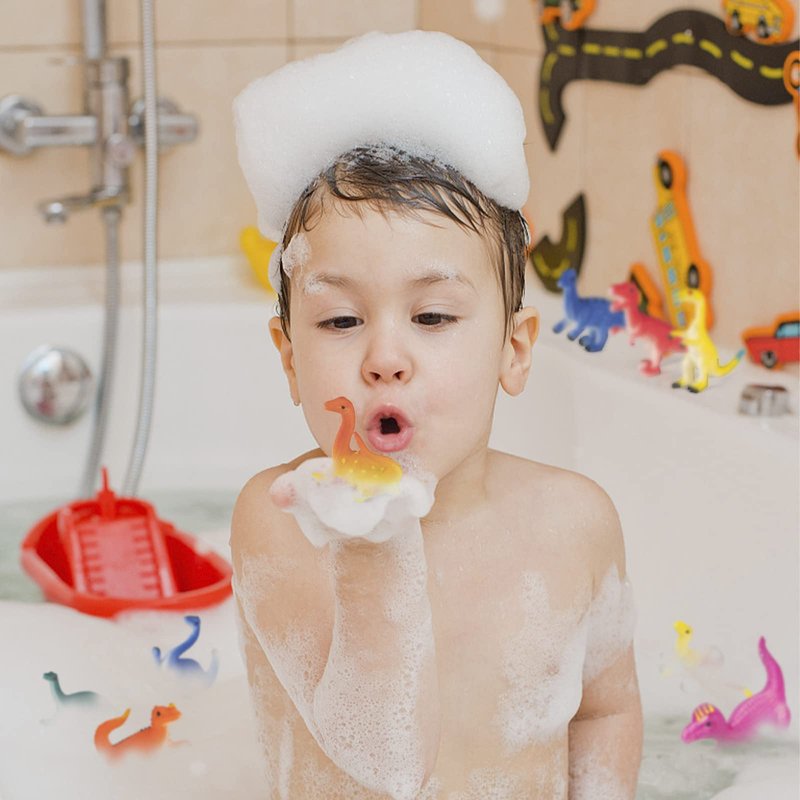 - Bath Toys:These dinosaur toys will change color, stretchy, safe, soft and durable, perfect for kids to play in the tub.Kids enjoy playing the novelty and funny dinosaur bath toys, they will love bath time from now on.