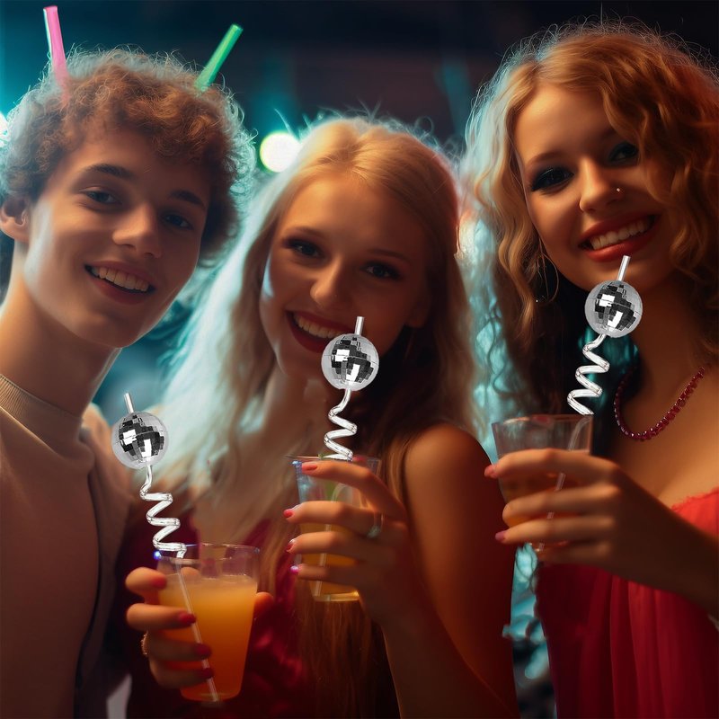 - Disco Party Favors : Value Package List include 12pcs plastic straws. Each straw features a shiny disco ball.