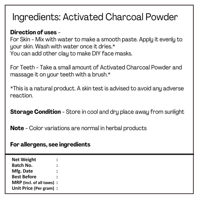 H&C Herbal Ingredients Expert Natural Activated Charcoal Powder is a triple-sifted, micro-fine powder. Activated Charcoal Powder for multiple purposes like exfoliation, cleansing and scrubbing. The fine texture gives smoother application and revives skin naturally.