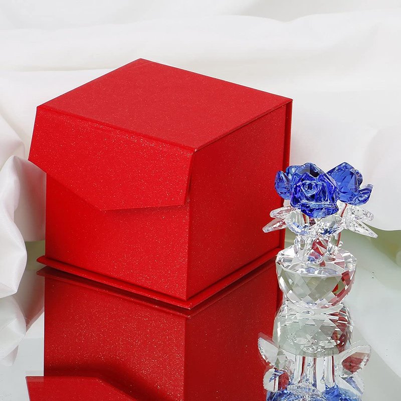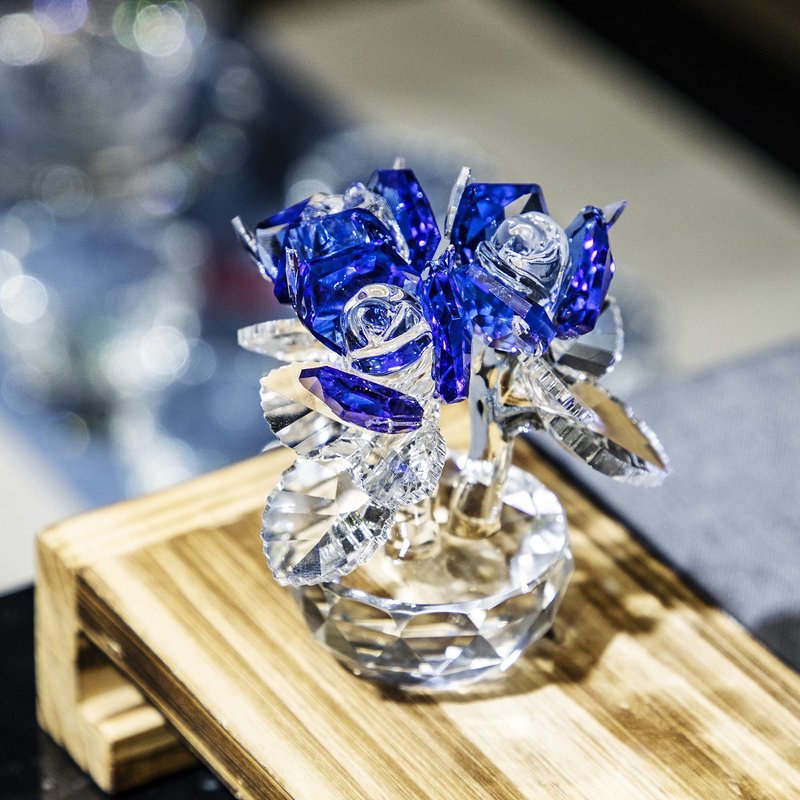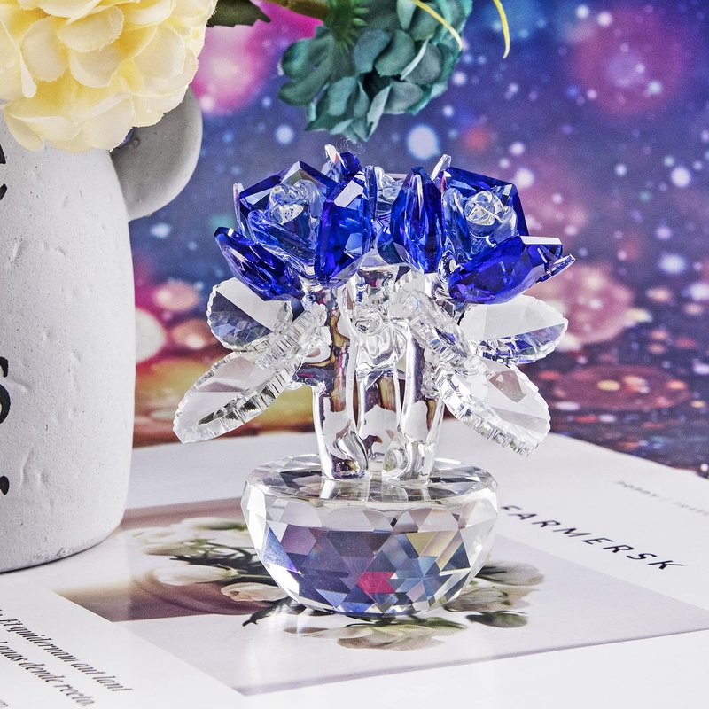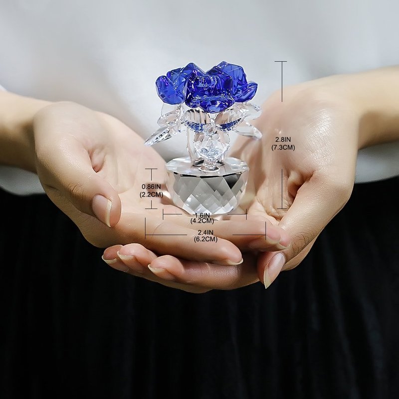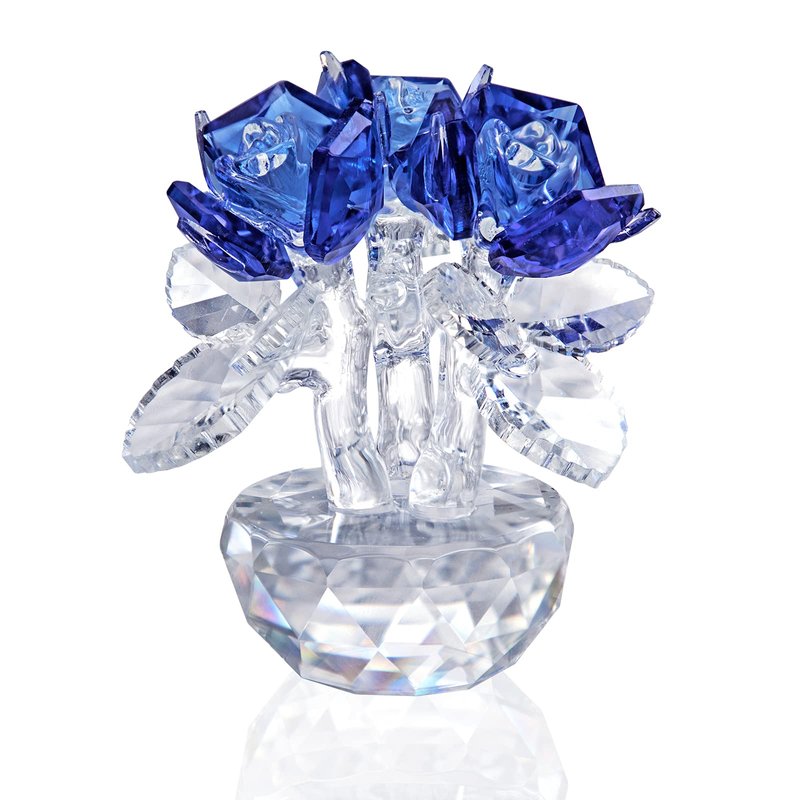 H&D HYALINE & DORA Blue Crystal Rose Flowers Figurines Ornament with Gift Box