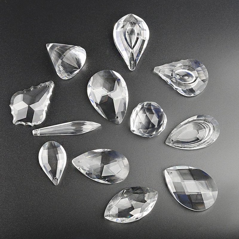 - MATERIAL&CONTAINS CONTENT——Material: made of Top Grade K9 Shiny and Flawless Crystals,super sparkly, Clear Crystal Laser Cut,Absolutely gorgeous quality. Size::1.3-2.5inch/33mm-64mm;N.W.:276g/12pcs;Various shapes are as follows: crystal lighting ball, Horse eye shape, Grid shape, Mesh shape, New pipa, Maple shape, Cone Prism, double crystal pendant,nest shape, bauhinia shape.Icicle Prism,Gourd Prism