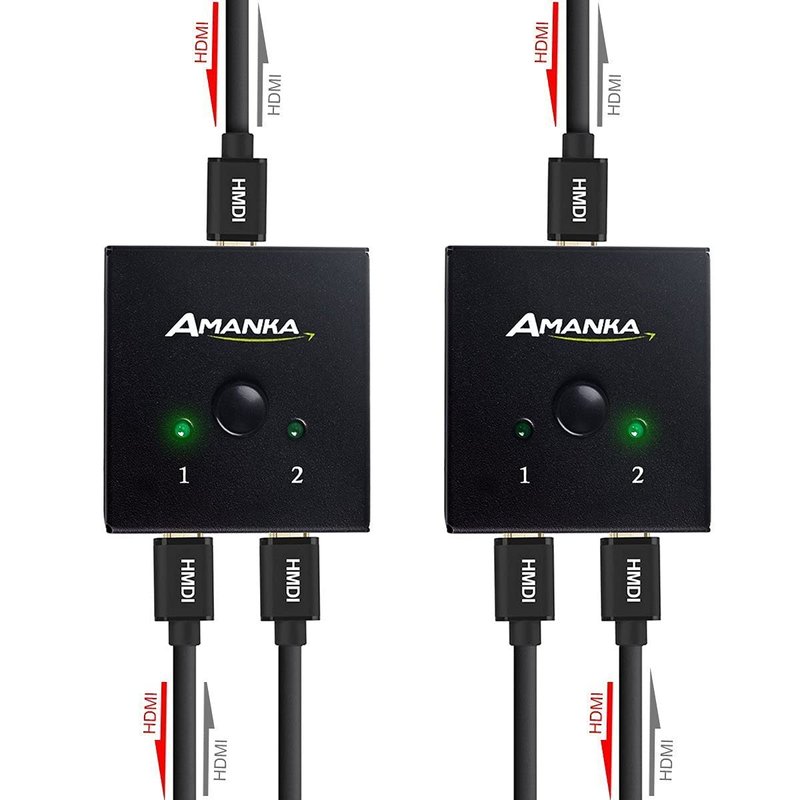 HDMI Switcher, AMANKA 4K HDMI Splitter 2 Ports Bi-Direction Manual Switch 2 x 1/1 x 2 HDMI Passthrough,No External Power Required-Supports HD 4K x 2K 1080P