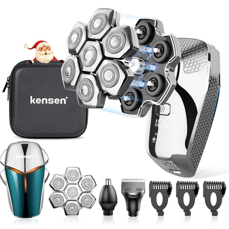 Head Shaver 7D, kensen 6-in-1 Upgrade Head Shavers for Bald Men, Detachable Electric Razor with Beard Nose Hair Trimmer, Waterproof Wet/Dry Mens Grooming Kit, LED Display, USB Rechargeable, Gift Trave