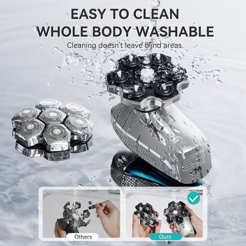 - 【Flexible & Smooth 7D Floating Head】7 blade heads can rotate flexibly, fit your head and face contour. Ultra flexible 7D pivoting blade design increases the shaving area and saves shaving time. Provide a comfortable smooth and close shaving experience.