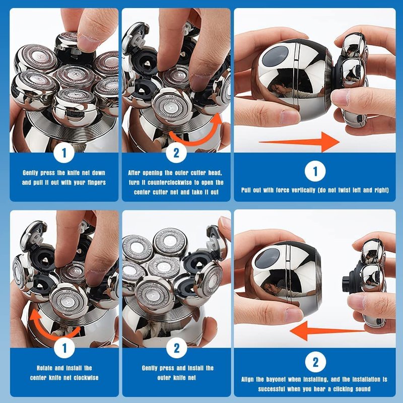 - 【Wet and Dry Shaving】If you want a cleaner shaving experience, we recommend that you use shaving foam to soften the stubble before using our head shavers. Our bald head shaver is water-resistant technology with the upgraded blade system, it can perfectly perform wet or dry shaving, you can dry shave directly or use it with shaving foam, the head shaver has a snap-on opening, simply flip open each razor head and clean the hair with the included brush, or wash the blade directly with water.