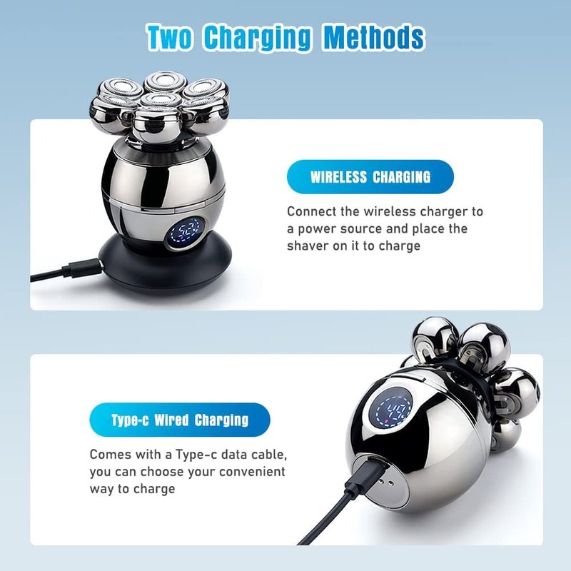 - 【Type-c & Wireless Charging】This electric razor comes with a wireless charging base. Charge for 2 hours and enjoy about 90 minutes shave. The smart led screen lights up when in use to remind you of the remaining charge so you can recharge in time. Men’s bald head shaver blade to accurately capture long and short hairs, which are precise, sharp and safe. The intelligent induction system effectively prevents hair pinching and brings you a comfortable and smooth shaving experience.