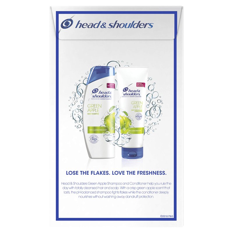 - Head & Shoulders Green Apple Anti-Dandruff Shampoo fights flakes and invigorates your hair and scalp