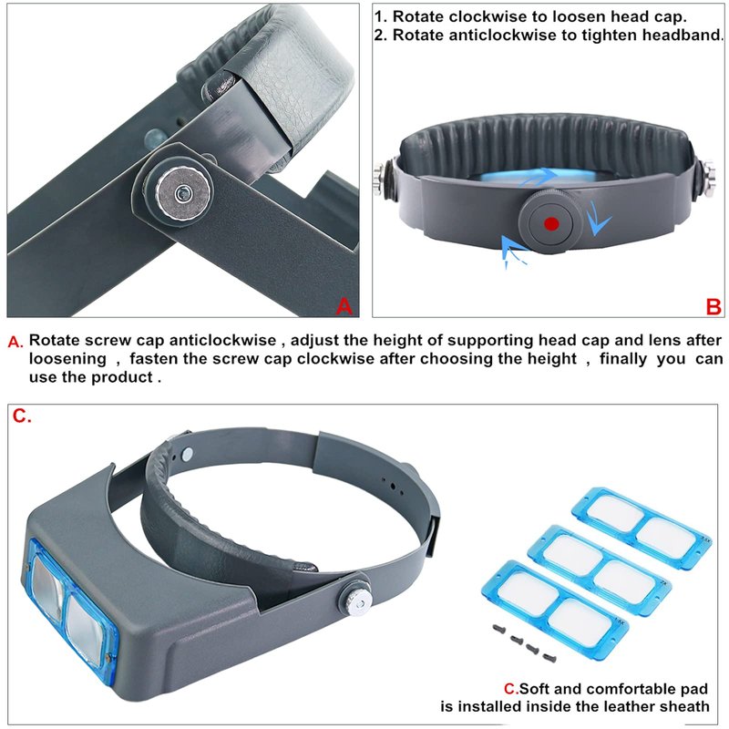 - Variety Usage - Binocular headband magnifier provides hand-free magnification to meet different magnifying needs: jewelry-making, watch-making, needlework, artwork, electronic inspection, book-reading, print inspection, and stamp-collecting.