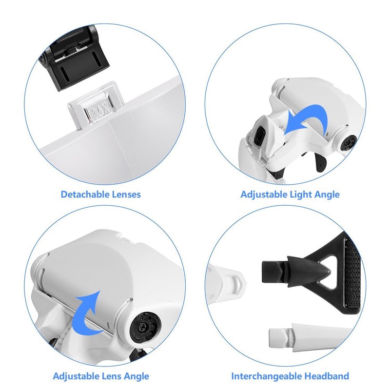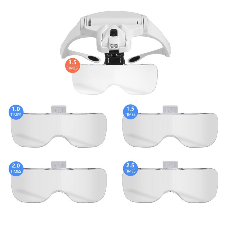 - Headband magnifier single-lens lens magnifications: 1.0X, 1.5X, 2.0X, 2.5X, 3.5X
