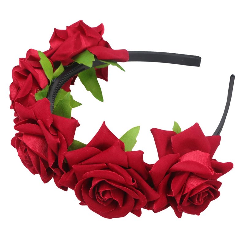 Headband Wedding Party Hairband Day of Dead Flower Crown (Claret)