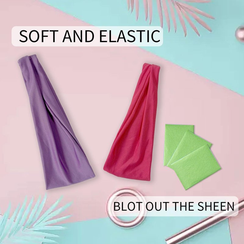 There are 10 pcs colors available headbands and 100 sheets of facial oil absorbent paper.this women running headband is crafted from cotton polyester and spandex blend fabric, lightweight and stretchy, offering excellent performance for wicking, durability and abrasion resistance. This yoga headband delivers a supportive fit for all sports need.