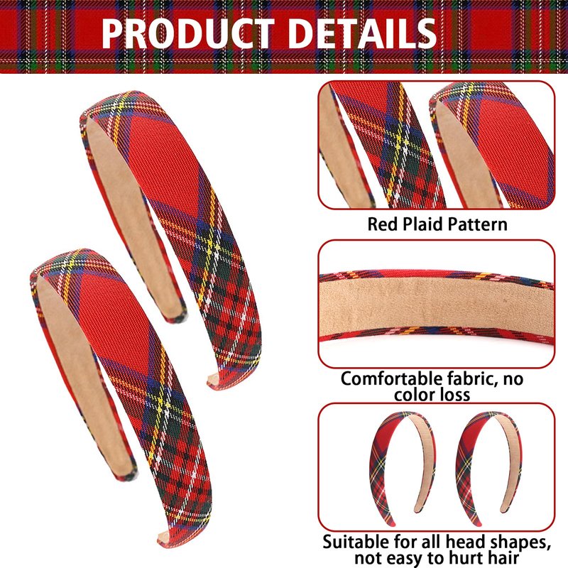 - High Quality Materials: This red tartan headbands accessories for girls are mainly made of high-quality plastic, which is sturdy, durable, and not easy to break. Additionally, the hair band is wrapped in a layer of cotton fabric, which is soft and skin friendly, and will not scratch the scalp, providing you with a comfortable wearing experience.