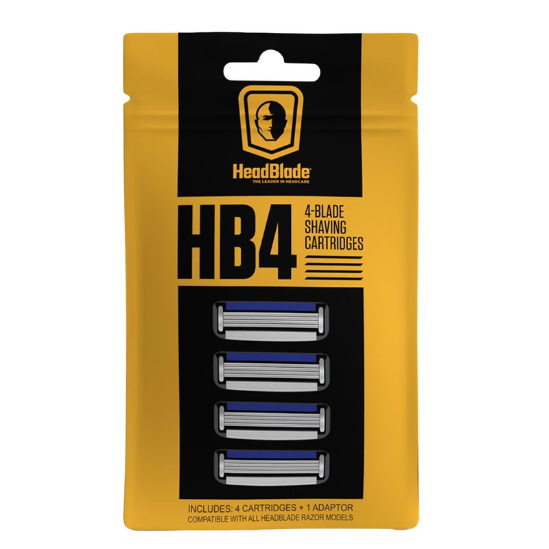 - The HB4 four-bladed cartridge (4 blades per pack) comes standard on the HeadBlade MOTO and ATX models and delivers amazing performance due to its flow-through design and seamless blade construction. (razor not included)
