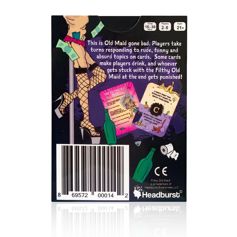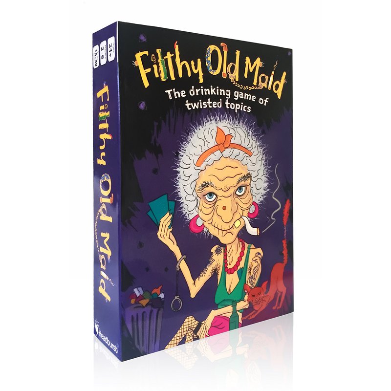 This is Old Maid gone bad. Players take turns responding to rude, funny and absurd topics. Get stuck with the Filthy Old Maid though, and you'll be punished! The player who has the Filthy Old Maid in their hand when the game ends is the loser and has to perform a punishment... usually involving drinking!