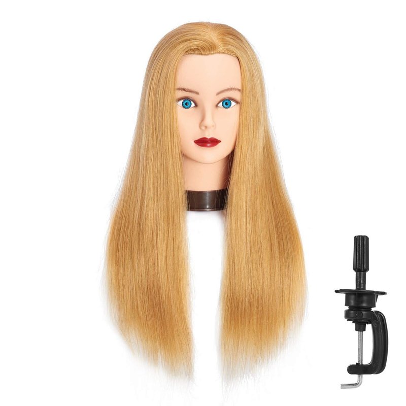 Headfix 24"-26" Hair Mannequin Head 100% Human Hair Hairdresser Practice Styling Training Head Cosmetology Manikin Doll Head With Clamp (6F1919W2718H)