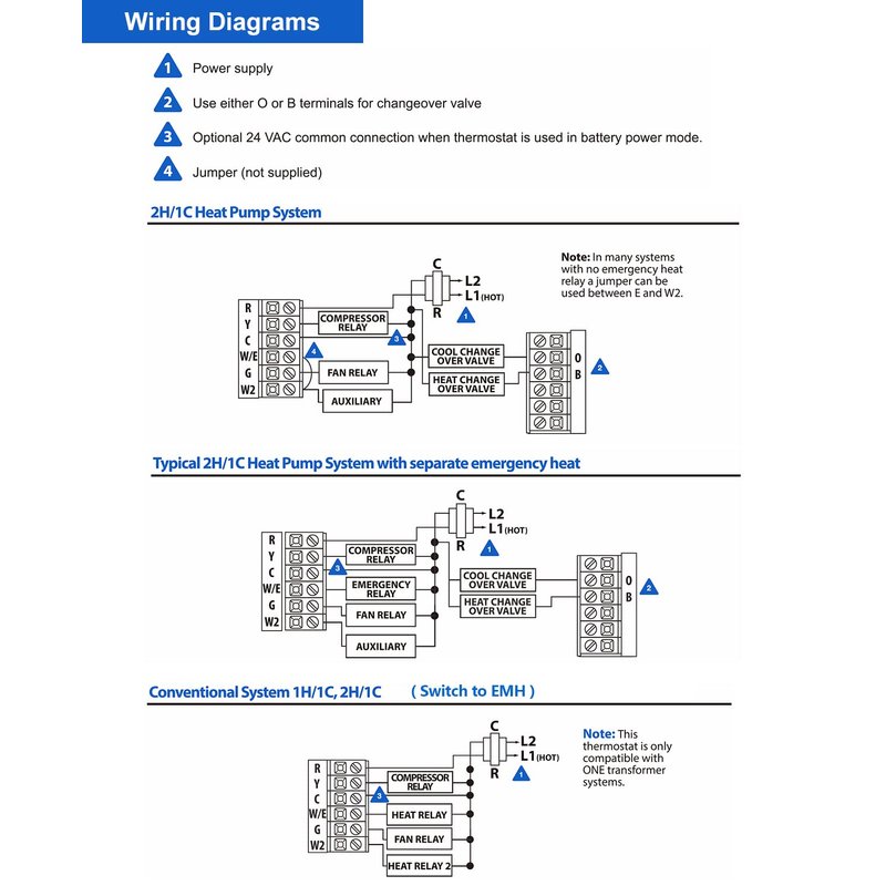 - For use with Heat Pump Systems or conventional (central gas, oil, electric furnaces) single stage systems, up to 2 heat 1 cool.