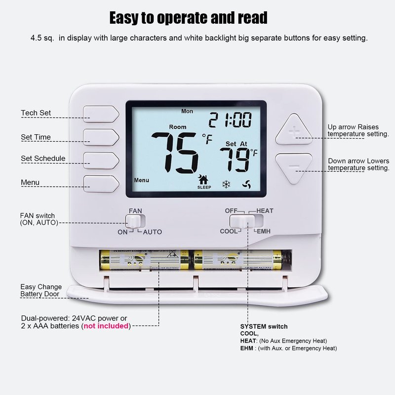 Heagstat H725 5/1/1 Day Programmable Heat Pump Thermostat, 2 Heat/1 Cool DIY Instal, with 4.5 sq. Inch Display