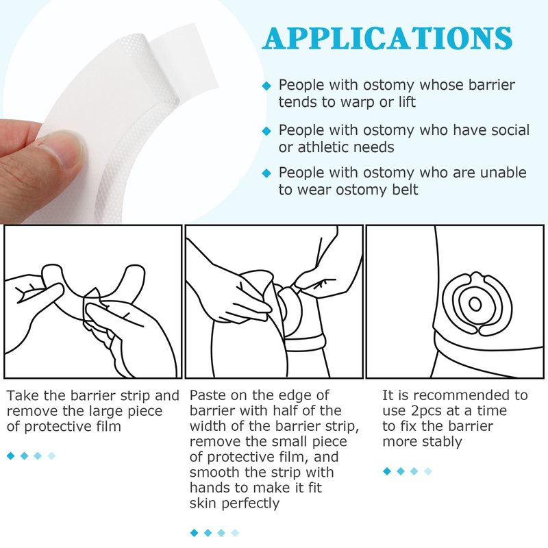 Healifty 40Pcs Ostomy Barrier Tape Elastic Ostomy Supplies Ostomy Barrier Strips Skin Barrier Strips for Ostomy Bag Colostomy Bags