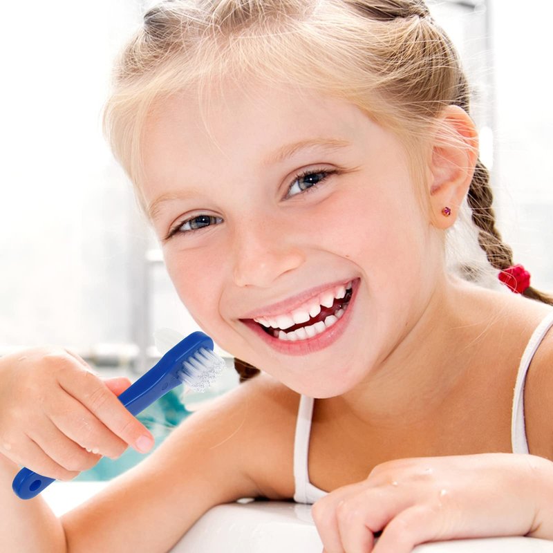 It may take you more time to clean false teeth than normal teeth because dentures require daily brushing for freshness and effective stain removal, and effervescent cleansers alone cannot remove all food particles and stains. So denture brush is recommended to help you get a more thorough clean. This kind of double-sided brush with different shapes of bristles will be the best choice for you.