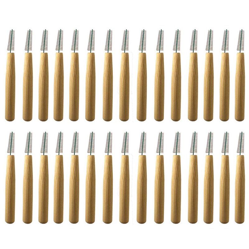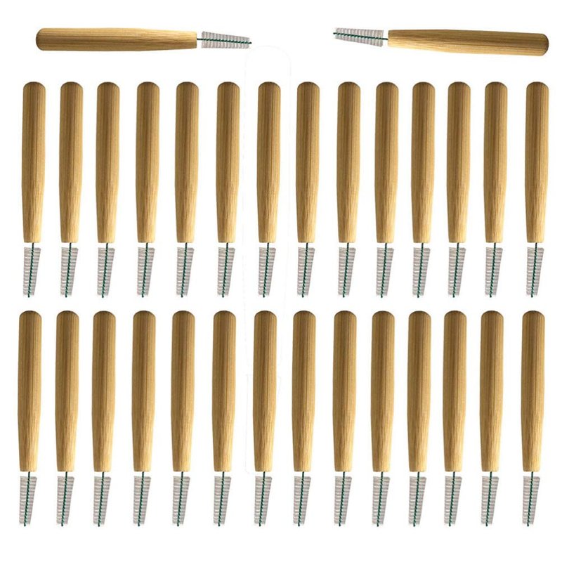 HEALLILY 30pcs Interdental Brushes with Bamboo Handle 1.0mm Between Teeth Toothbrush Oral Hygiene Cleaner Gingival Dental Floss Pick for Personal Health Care