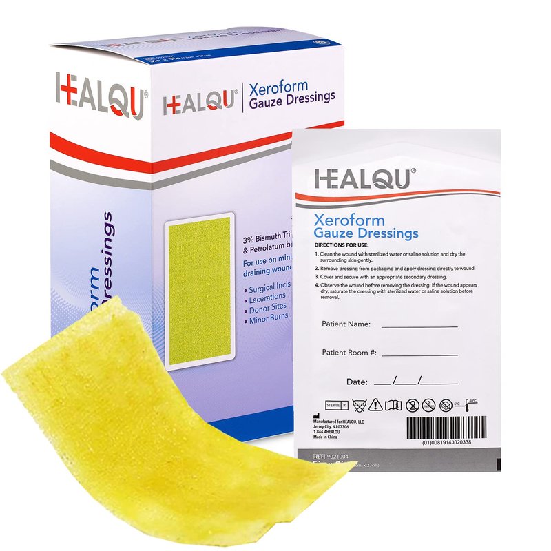 - MEDICAL-GRADE - The Healqu Xeroform Gauze Dressing is a fine mesh gauze occlusive dressing infused with a blend of petrolatum and 3% Bismuth Tribromophenate (Xeroform), which is used for low exudating wounds.