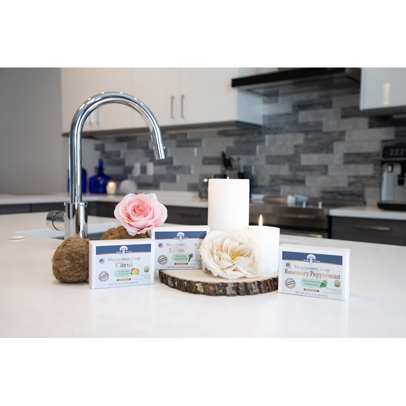 Health and Wisdom Magnesium Soap Bar with Lavender Essential Oil for Relaxation, Hand Made with Pure Magnesium Oil and Aloe for Supple, Radiant Skin, Suitable for All Skin Types (Lavender Scent, 4oz) Enjoy the benefits of topical magnesium in a beautifully hand-made bar soap, gently scented with natural lavender essential oil. BENEFITS: Soothing bar soap with pure magnesium chloride cleans, purifies and leaves skin soft and radiant. While promoting the relaxation of muscle tension. USES: Our natural Magnesium Soap is perfect to replace your body soap that is full of chemicals you can't even pronounce while taking in the wonderful benefits of magnesium. Our soap line is also a wonderful hand soap, washing away dirt and grime. INGREDIENTS: Magnesium Oil, Pure Aloe Vera, Coconut Oil and Shea Butter a great lotion and moisturizer helping soothe and hydrate the skin. ABSORPTION: Magnesium is absorbed through the skin and directly into the tissue and cells. Research suggests that transdermal magnesium application has more absorbency rate than magnesium supplements or magnesium from food sources. APPLICATION: Apply directly to skin with water while bathing or washing hands. Magnesium will absorb through the skin.