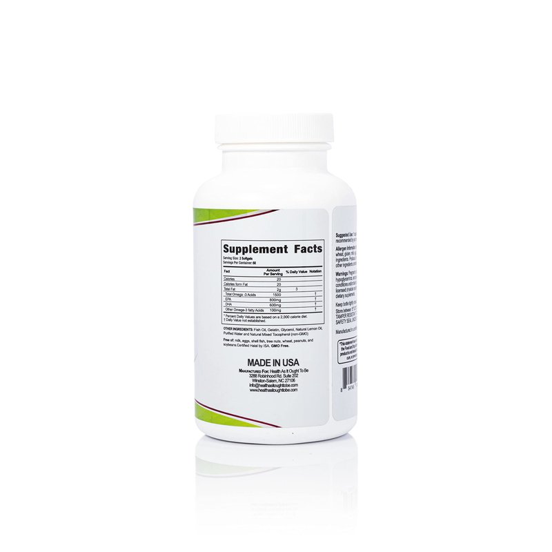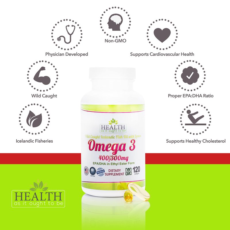 Health As It Ought To Be Omega 3 400/300 mg Supplement | Physician Formulated EPA/DHA in Ethyl Ester Form Wild Caught Icelandic Fish Oil with Lemon | 120 Capsules