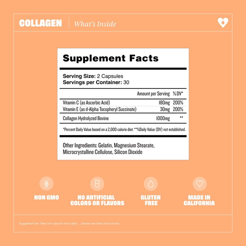 - COLLAGEN: Keep your skin looking smooth with 2000mg of Types I and III Collagen Peptides per daily serve. Includes Vitamin E and Vitamin C.*