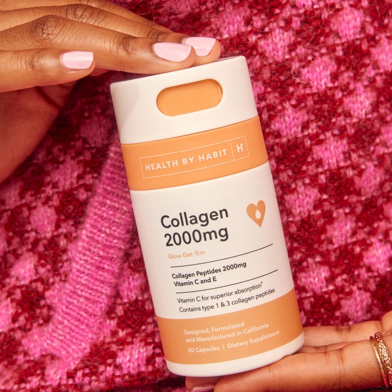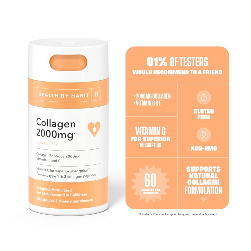 Health by Habit Collagen Supplement (60 Capsules) - Vitamin C & Vitamin E, 2000mg, Collagen Peptides, Superior Absorption, Support your Skin, Non-GMO, Sugar Free (1 Pack)