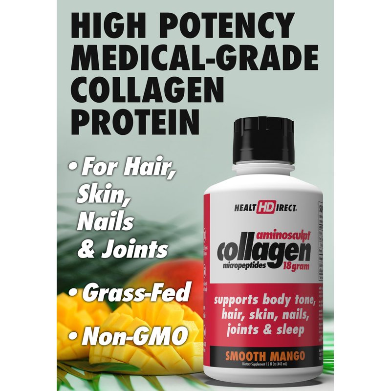 Health Direct AminoSculpt Sugar-Free Collagen Supplement - High Potency Medical-Grade Protein for Hair, Skin, Nails & Joints, Grass-Fed, Non-GMO, Liquid Collagen - Smooth Mango - 15 Fl Oz