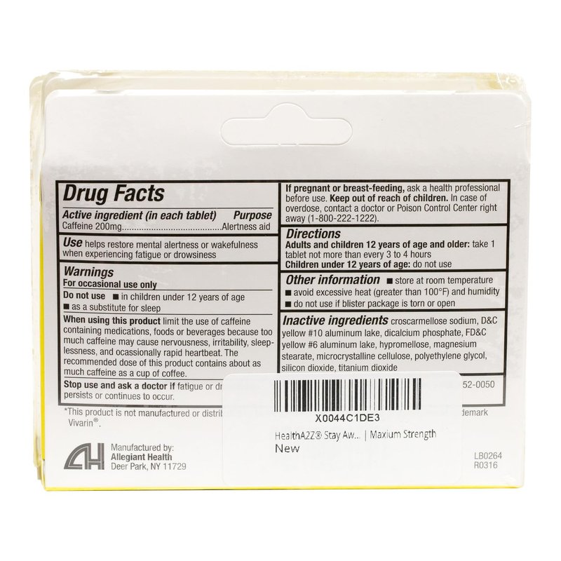 HealthA2Z® Stay Awake | 200 mg Caffeine | Alertness Aid with Caffeine | 3 Packs of 16 Tabelts (48 Tablets Total) | Maxium Strength