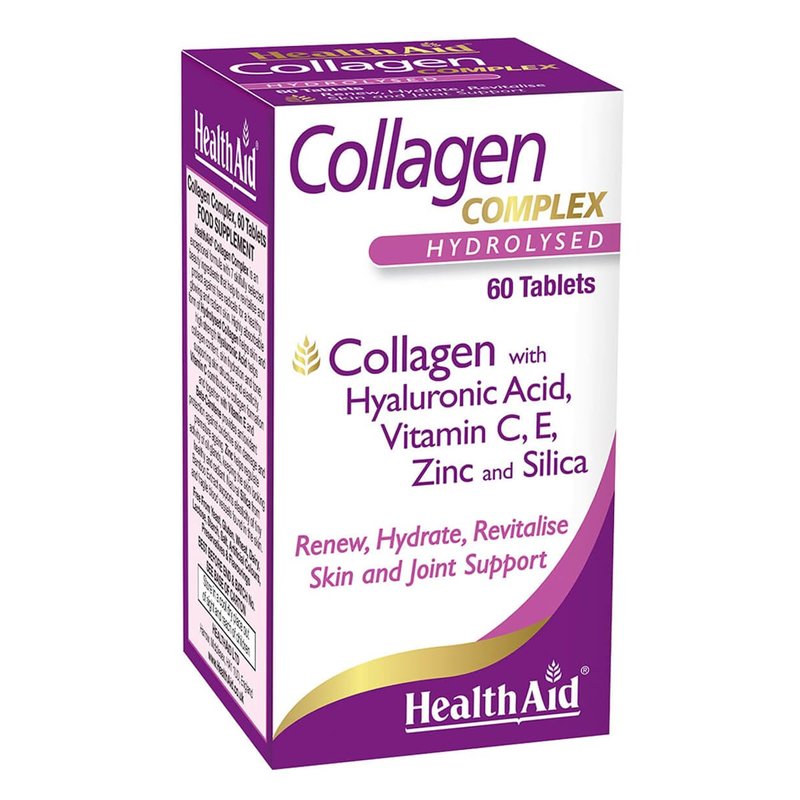 HealthAid Collagen Complex is an exceptional formula with 7 skillfully selected beauty ingredients that help to revitalize, protect against free radicals, supports skin hydration.* Free From Yeast, Gluten, Wheat, Dairy, Lactose, Starch, Salt, Artificial Colors, Preservatives & Flavorings