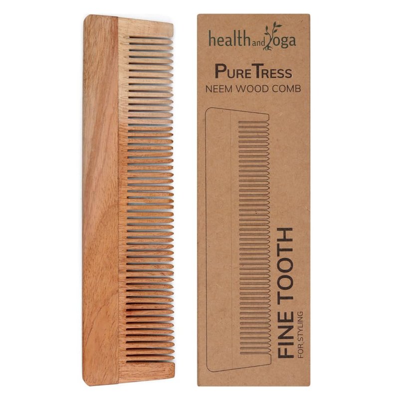 HealthAndYoga™ PureTress Handcrafted Neem Wood Comb - Non-Static and Eco-Friendly Fine Tooth Comb for Men and Women - Soothing Scalp and Hair Health - 7 Inches