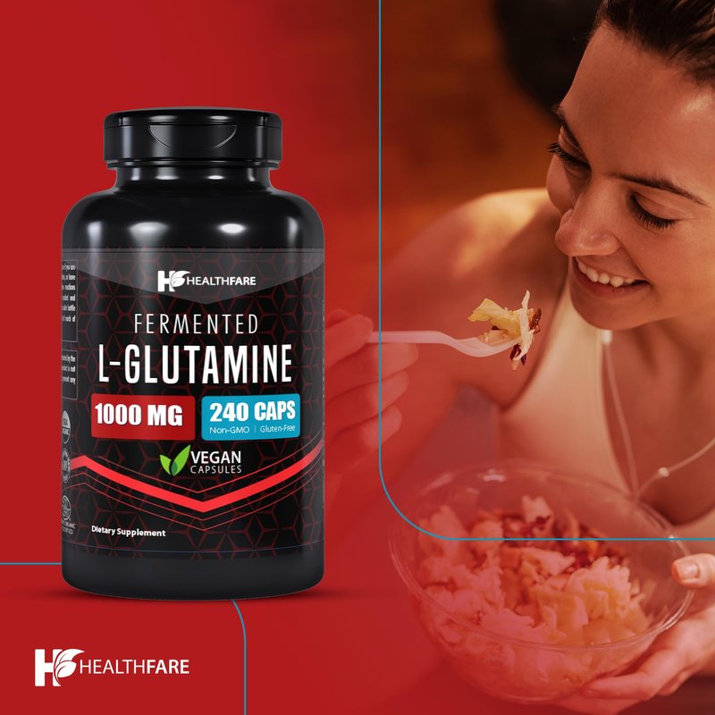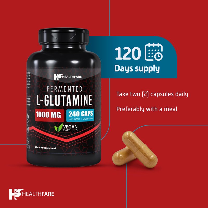 Healthfare L-Glutamine 1000mg | 240 Capsules | Amino Acid Fuel for Gut & Muscle Health | Non-GMO | Gluten-Free | Support for Recovery & Wellness | Made in The USA