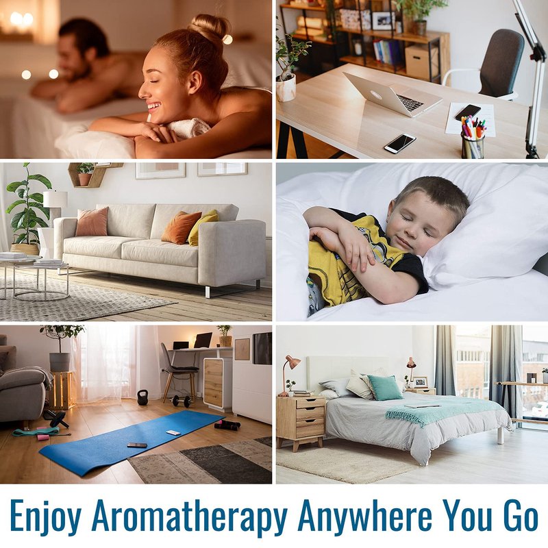 - AROMATHERAPY DIFFUSER compact design is sleek and modern. The beautiful and modern wood grain base or white base complements any room. It is the perfect apartment essential, dorm essential or new home essential to bring peace and tranquility anywhere.