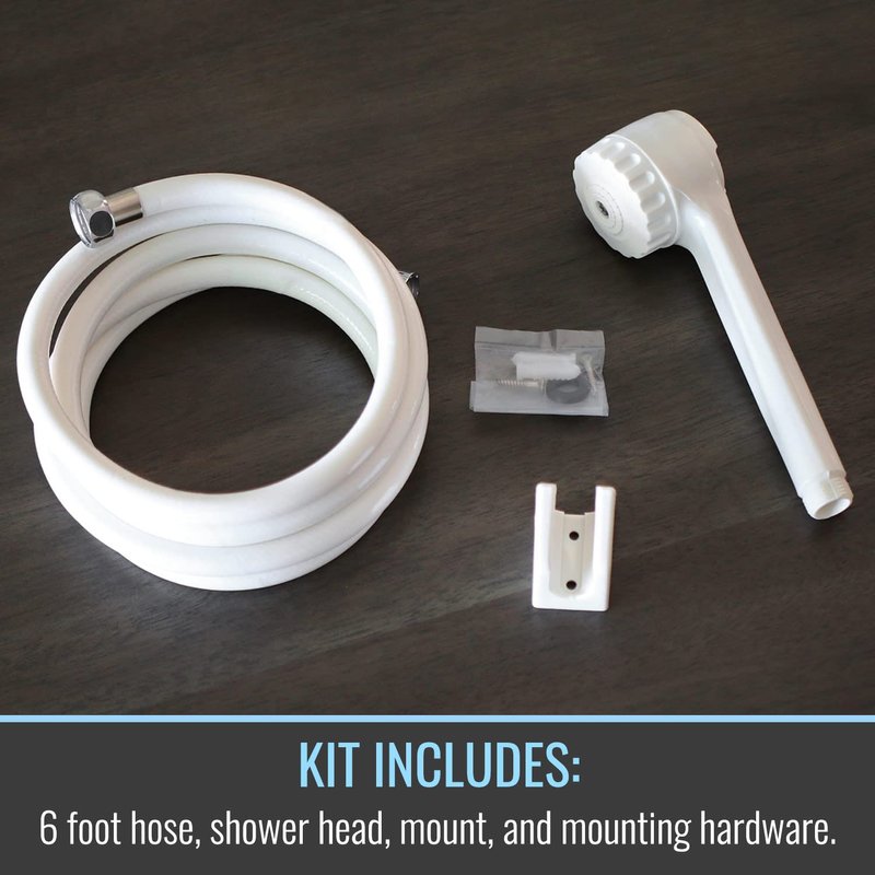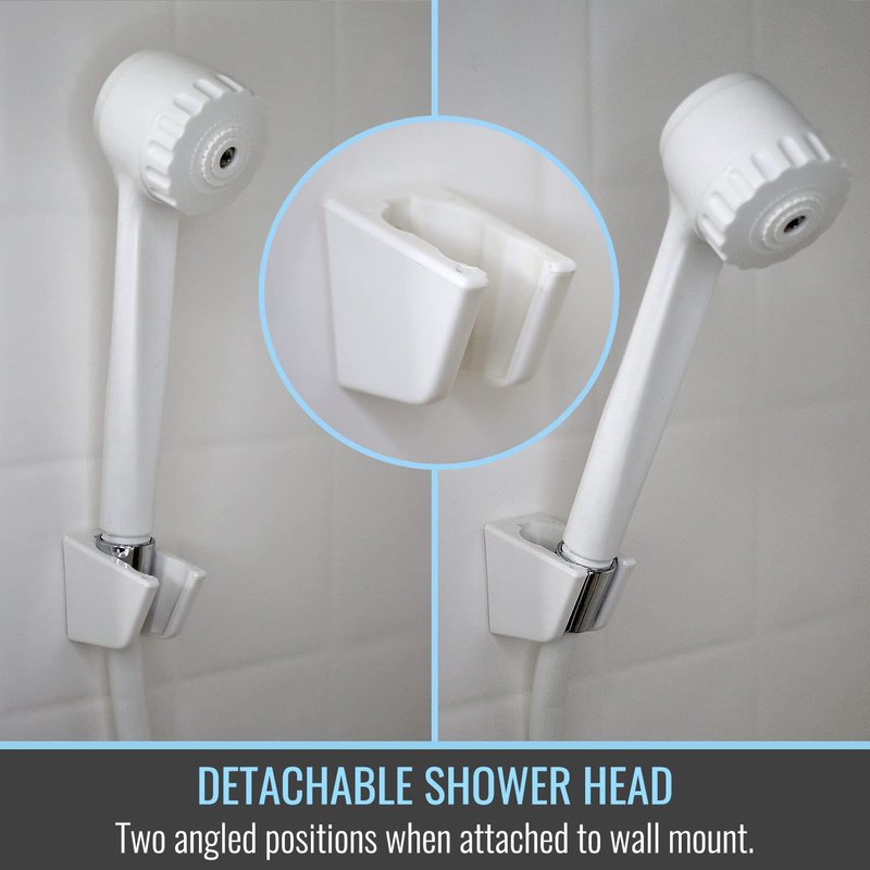- DETACHABLE SHOWER HEAD SPECS: white detachable shower head and 6 foot hose
