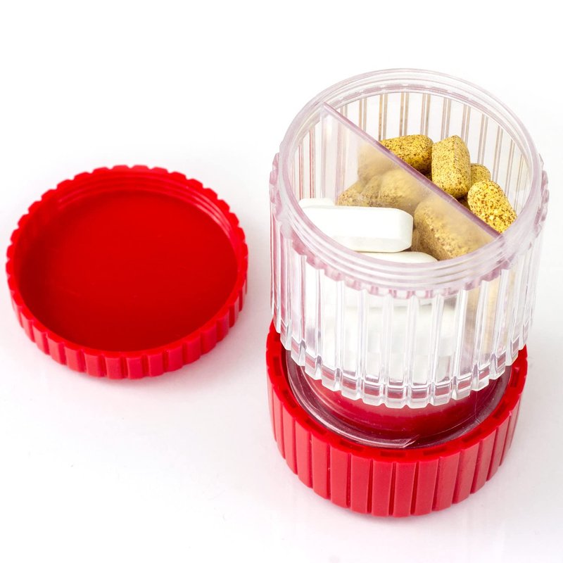 HealthSmart Pill Crusher and Grinder, Crushes Vitamins and Tablets, Holds Up to 2 Pills, With Ergonomic Grips, Red