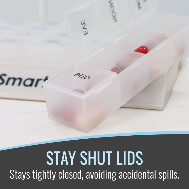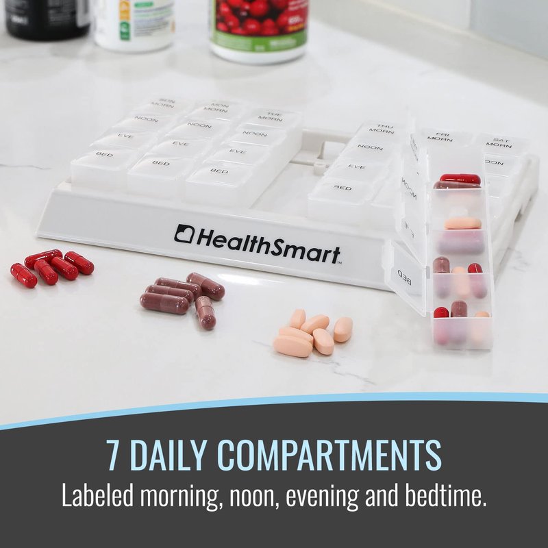 - 7 DAY PILL ORGANIZER allows you to easily remember to take your medicine by organizing a full 7 days of medication.