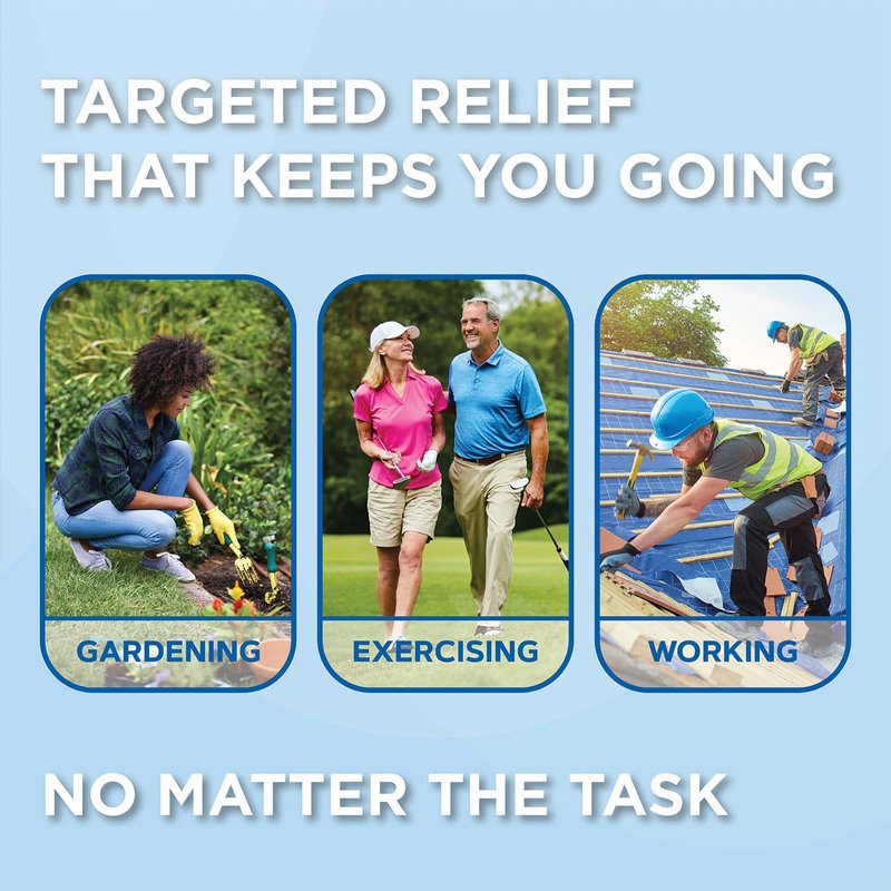 - MAXIMUM STRENGTH RELIEF — Provides temporary relief of minor aches and pains of muscles and joints associated with arthritis, simple backaches, strains, sprains and bruises. Effective for up to 8-hours. Apply directly to the skin.
