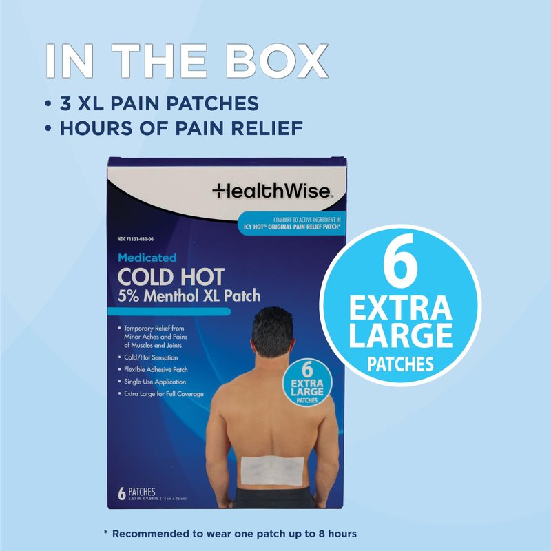 HealthWise Cold Hot Medicated Menthol XL Patch | 5% Menthol | Back and Large Areas | 5.51” x 9.84” | 6-Count | Paraben-Free | Soothes Minor Aches and Pains | Super-Size Relief