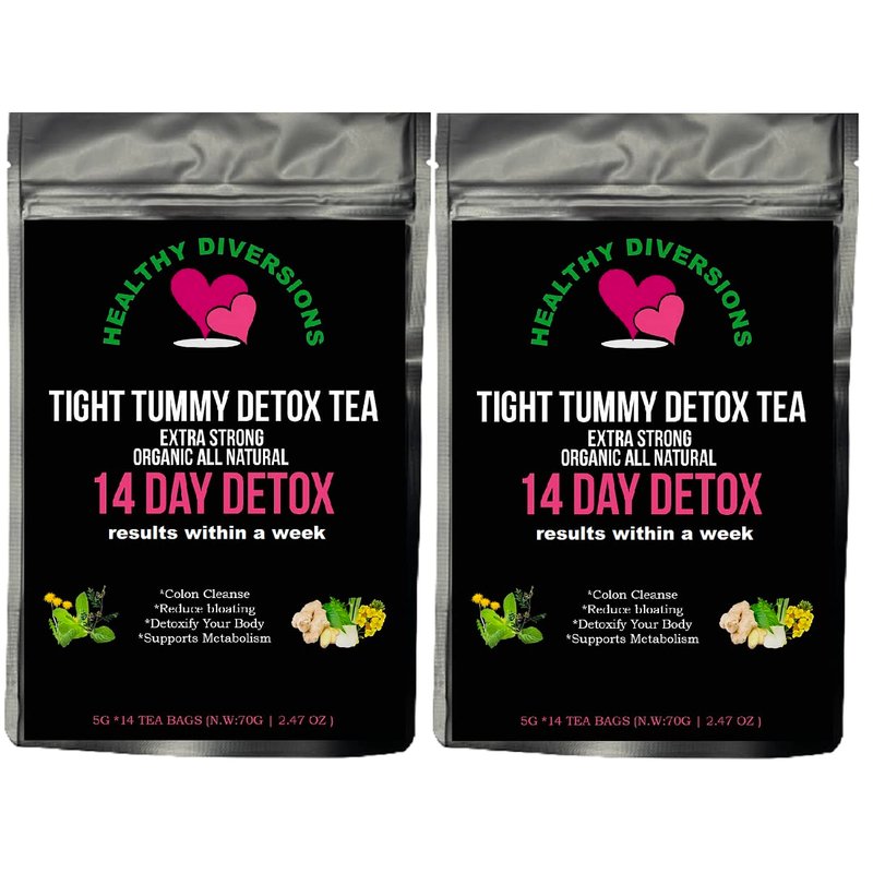 Healthy Diversions Tight Tummy Detox Tea, Extra Strength results within a week reduce bloating Herbal Tea Bags, Wellness & Energy Support 14 Tea Bags, 2.4oz (2 Packs Deal)