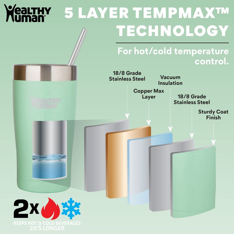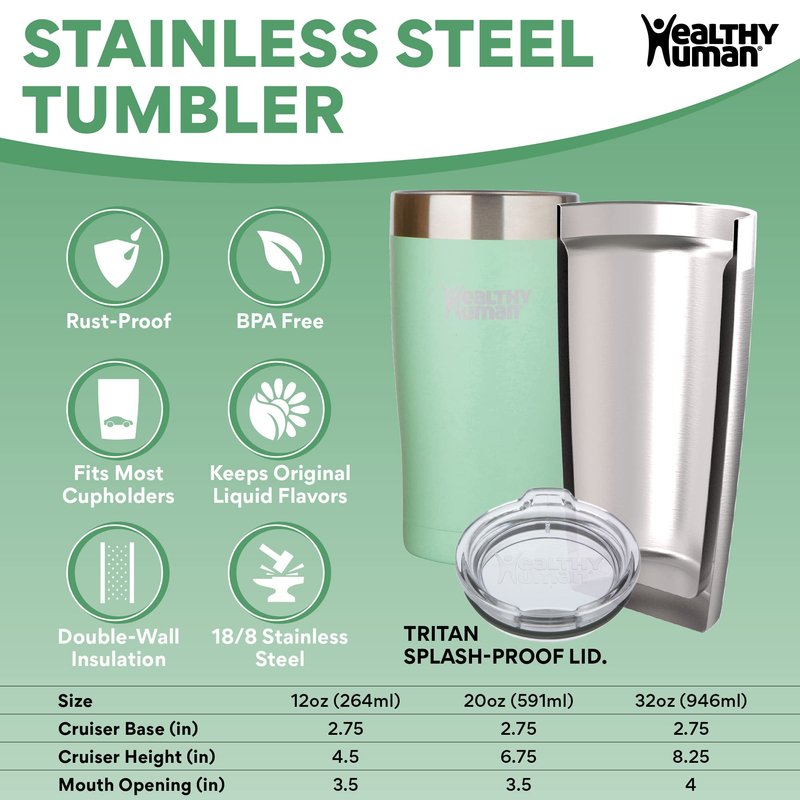 - KEEPS LIQUIDS COLD & HOT 2X LONGER: The Healthy Human Cruiser travel tumbler with lid and straw keeps your favorite beverages cold or hot two times longer than traditional mugs or plastic disposable cups.