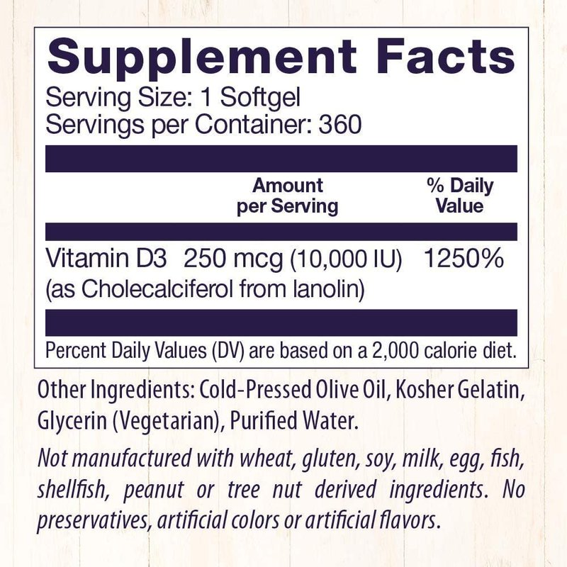 - High-Quality Vitamin D Supplement: Each softgel contains 10,000 IU of vitamin D3, so your body gets the nutrients it needs for optimal health
