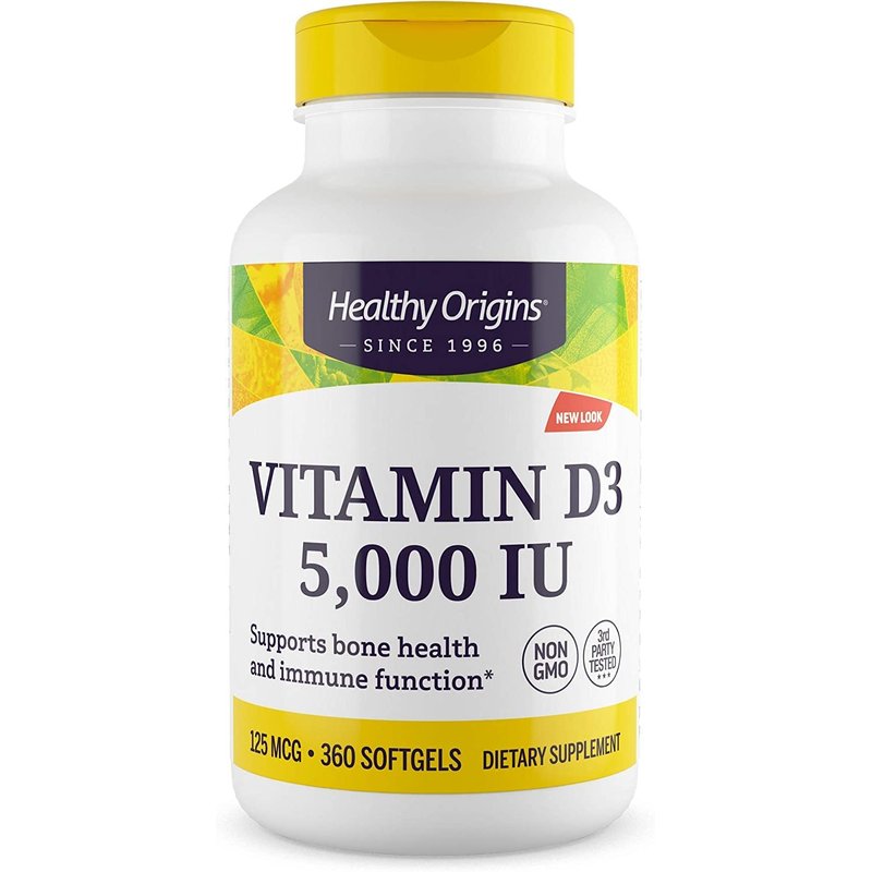 Healthy Origins Vitamin D3 (Lanolin) 5,000 IU - Bone Health and Immune Support Supplement - Easily Absorbable Vitamin D Supplements - Gluten-Free Vitamin D3 Supplement - 360 Softgels