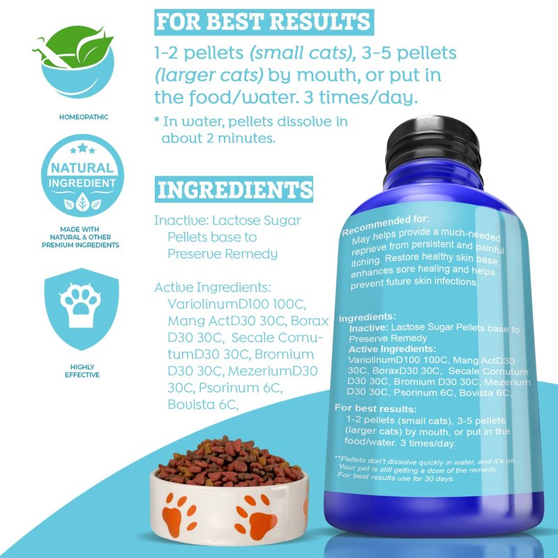 - GENTLE MANGE RELIEF FOR CATS: Featuring an all-natural proprietary blend of powerful organic minerals to help your cat find relief, these homeopathic pellets are a carefully crafted alternative to traditional medication, for safe and effective symptom management and healing.