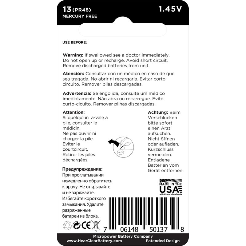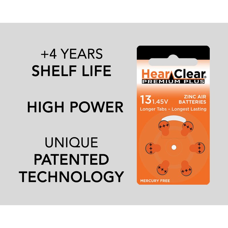 - HearClear Size 13 Hearing Aid Battery | 260 mAh | 4-year shelf life | High capacity | High power | Anti-leakage design