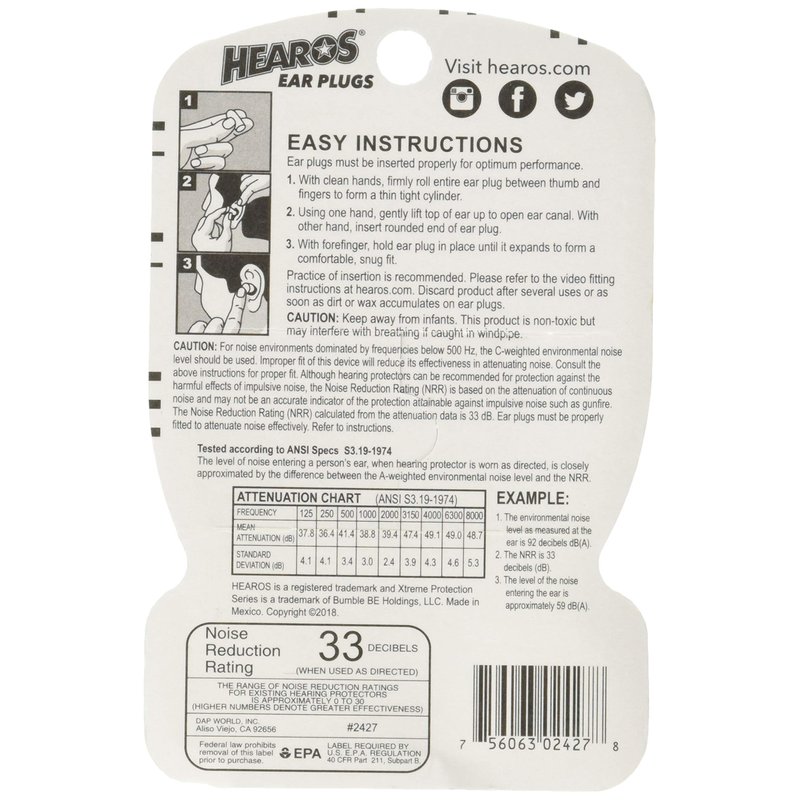 HEAROS Xtreme Protection Series Foam Ear Plugs, 14 Pair (Pack of 3)