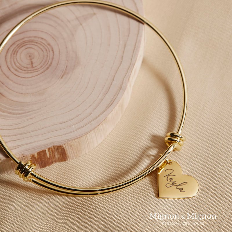 - Size of the heart charm is 13 by 15 millimeters and size of the bangle is 2.68 by 2.36 inches
