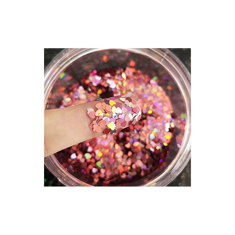 Heart Glitter Confetti 2mm Heart-Shaped Confetti Laser Sequins for Party Decoration, DIY Crafts, Premium Nail Art, Body Art Eye Bling - 10g,Holographic Pink